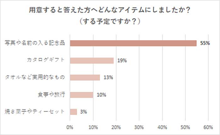 半数以上が、「写真や名前が入る記念品」を用意すると回答しました。