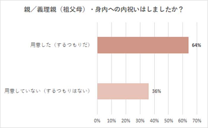 両親など身内に内祝いを準備する人は全体の約6割で、用意する派の方が多いことがわかりました。