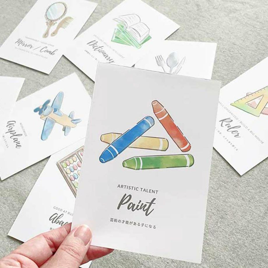 1歳のお誕生日に、子供の目の前にそれぞれ意味を持たせたアイテムを並べ、子供が何を選ぶかで子供の将来の職業や才能を占うという、「選び取り」と呼ばれる記念行事があります。そこで使われるのが「選び取りカード」です。