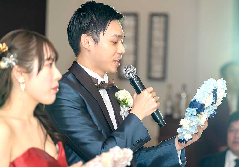 両親への感謝の気持ちを伝えます。新婦の両親への一言や、ゲストへの謝辞もおすすめです。