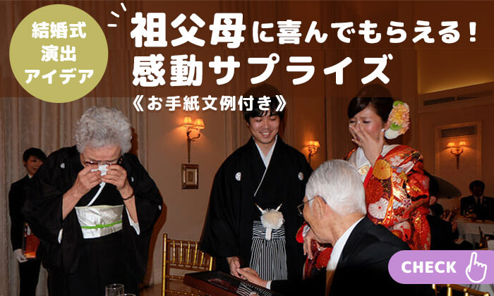 じいちゃんっ子、ばあちゃんっ子だったという新郎さん、大好きな祖父母に喜んでもらう演出を取り入れてみませんか?
