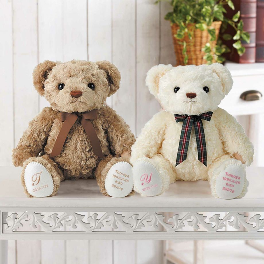 生まれた時の体重で作るウェイトベアー。あの時と同じ重みに“ありがとう”の気持ちを託して。ベアカラーは2色、リボンは4種あり足裏には刺繍が入ります。 1グラム単位で重さを再現でき、1000グラム~4000グラムまで製作可能。
