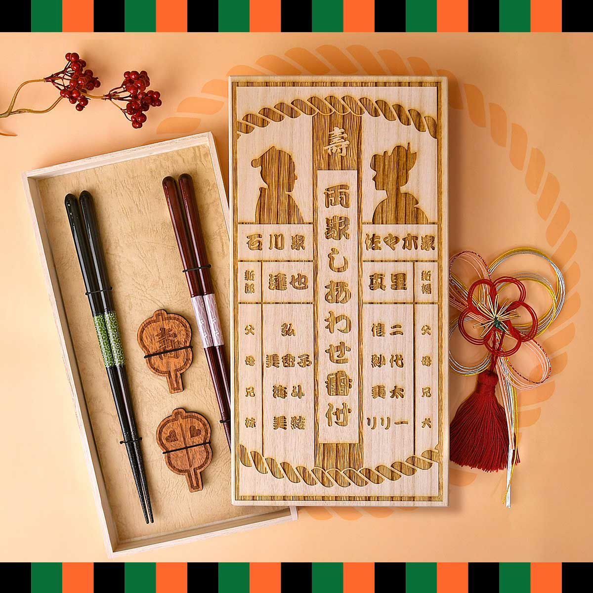 夫婦箸・箸置きセット 相撲「両家しあわせ番付」