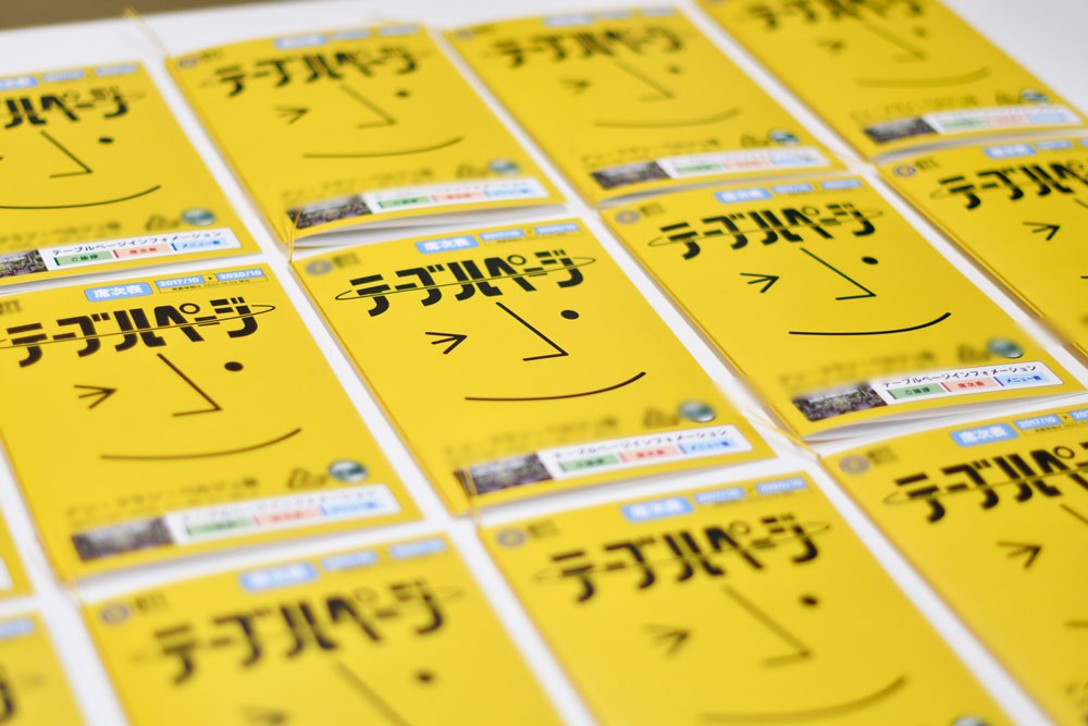 すばりこちら、店舗や企業を探したいときにぺらぺらと開くあの黄色い冊子をイメージして作られた席次表兼プロフィールブック。