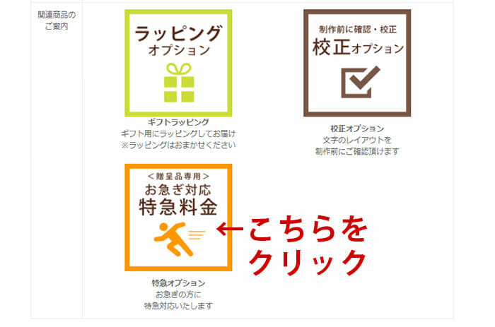 そちらにあるお急ぎ対応特急料金をクリックします。