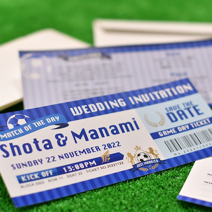 野球好き、サッカー好きの新郎新婦様の熱い声をうけて、ファルベで誕生した【観戦チケット風招待状】。