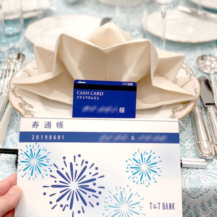 【オリジナル実例集】「寿通帳」で幸せを積立て♡ 通帳型席次表&キャッシュカード型席札