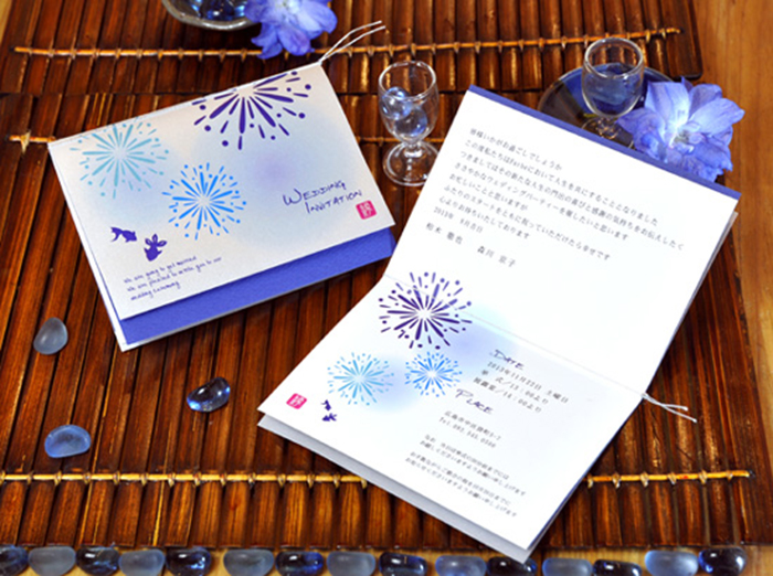 通帳型席次表の表紙はファルべのペーパーアイテム「藍華」の花火をモチーフに。