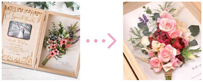 『枯れない花束』は多くの新郎新婦様からご家族への贈呈品として選ばれています(^^)