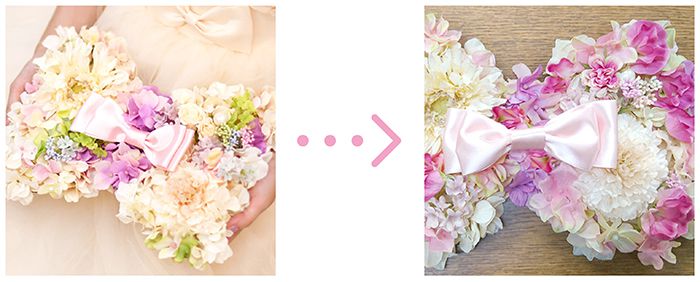 ドレスと合わせる場合などには、画像をお送りいただくとイメージを近づけやすくなります。