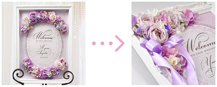 フラワーウェルカムボード「フェミール」 リボンをつけたアレンジに。