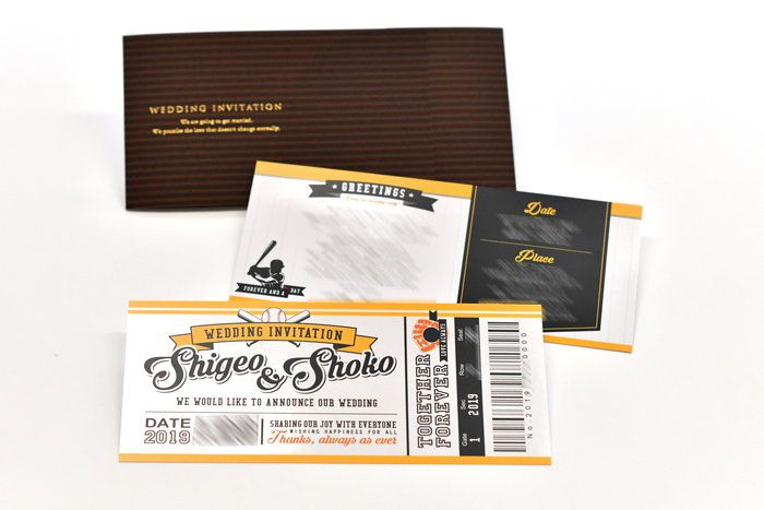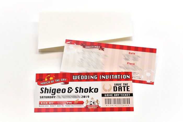 【オリジナル実例集】お互いの好きなスポーツ&チームカラーで作る!スポーツ観戦チケット風招待状