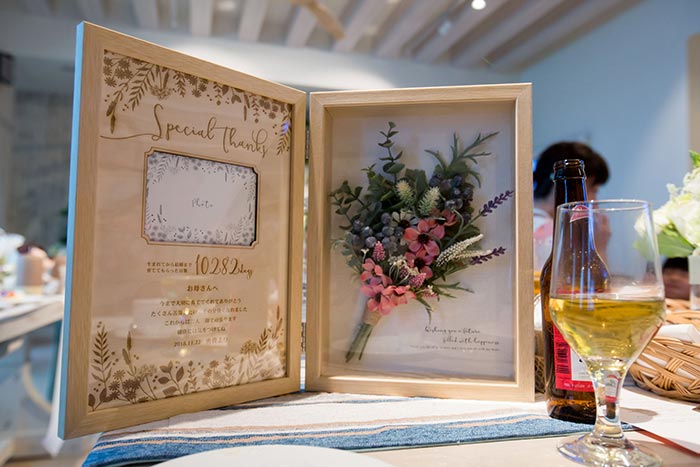フォトフレームとして写真入れ替えも可能なので、ずっと結婚式当日のことを