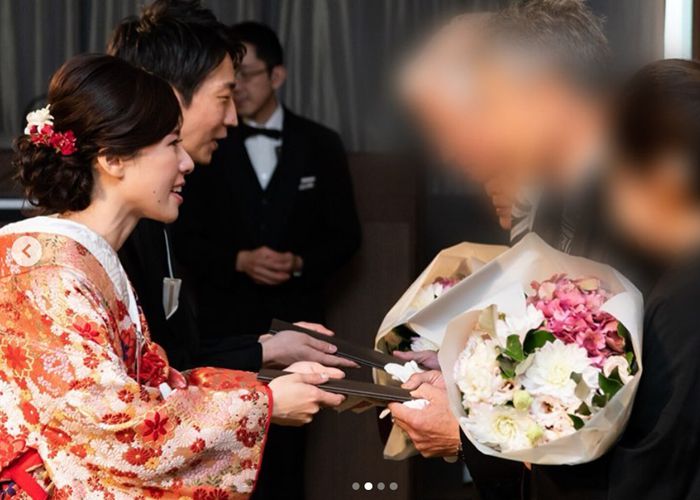 渡した後、新郎父の挨拶なのに私の父が子育て感謝状をずーっと眺めてしまい