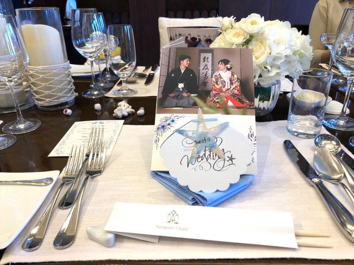 メニュー席札はメニュー(貝殻型)席札(ヒトデ型)とカタチも変わっているので目をひきますし