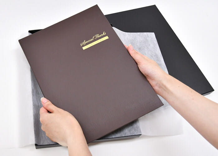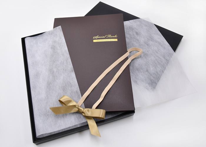 高級感のある布目調の質感に、ゴールドの箔押しをほどこした「Special Thanks」の文字がキラリ。