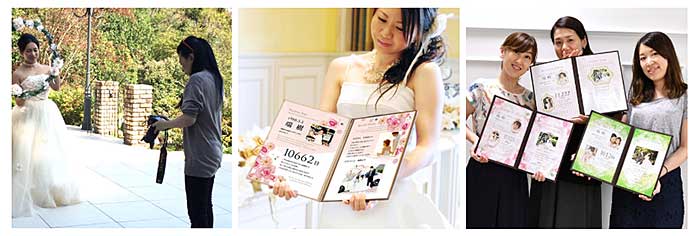 実は、子育て感謝状の販売実績は長く、2007年からもう10年以上販売し続けている商品です。当初このアイテムを企画したきっかけのひとつが、結婚式の前撮りをした写真をつかってご両親にミニアルバムとしてプレゼントしたい!そんな声を多くいただいたからでした。