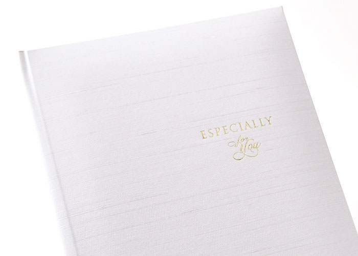 光沢のある布調の素材にゴールドの箔押しで「ESPECIALLY for you」の文字がキラリ。