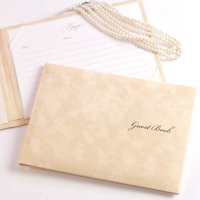 芳名帳(ゲストブック)は結婚式に必要なアイテム。受付でゲストにお名前やご住所などを書いていただくものです。ですがひとくちに芳名帳と言ってもいろんな種類があるのをご存じですか?