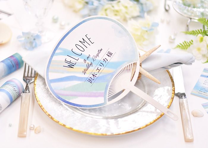 少人数の場合、テーブルが1卓~2卓だから…と招待状や席次表などを用意されないカップルさんも多いのですが、座席が決まっている場合には席札はぜひ用意したいアイテムです。