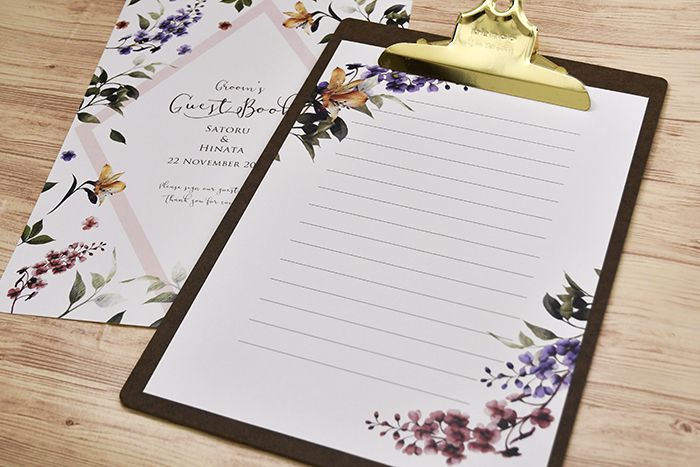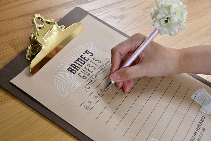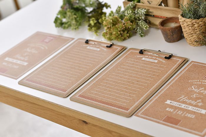 人気のペンコクリップボードや均一ショップで販売されているバインダーなどと合わせて二人らしいゲストブックに仕上げてください(^^)