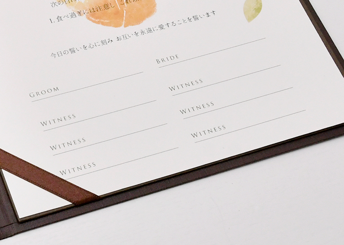 こちらの結婚証明書は、定型文もありますがお二人で考えたオリジナルの誓いの言葉を入れることができるので二人らしい結婚の誓いができます。お二人もオリジナルの誓いの言葉にされています♡