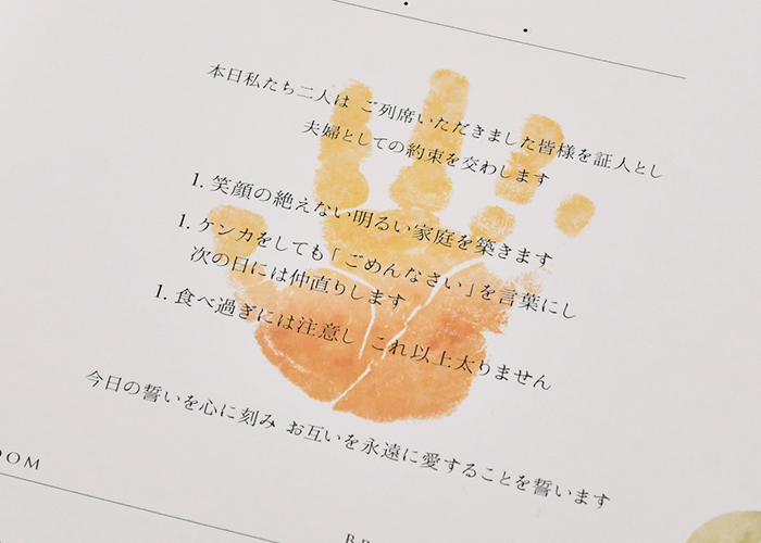 自分たちで考えた二人だけの誓いの言葉で宣言、おすすめです!