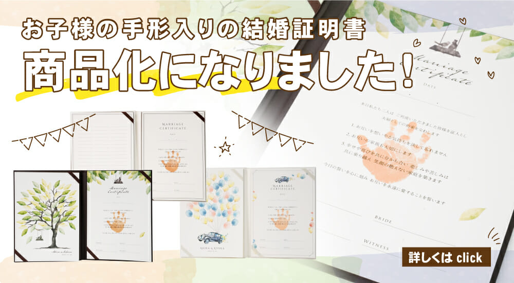【オリジナル実例集】お子様の手形入り!”一生”思い出に残る家族の宝物♡ゲスト参加型結婚証明書