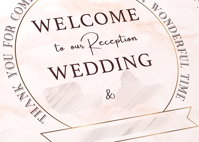 真ん中のWELCOME WEDDINGの部分と、挙式日のリボン帯の縁取りはグラデーションでゴールド風に♡
