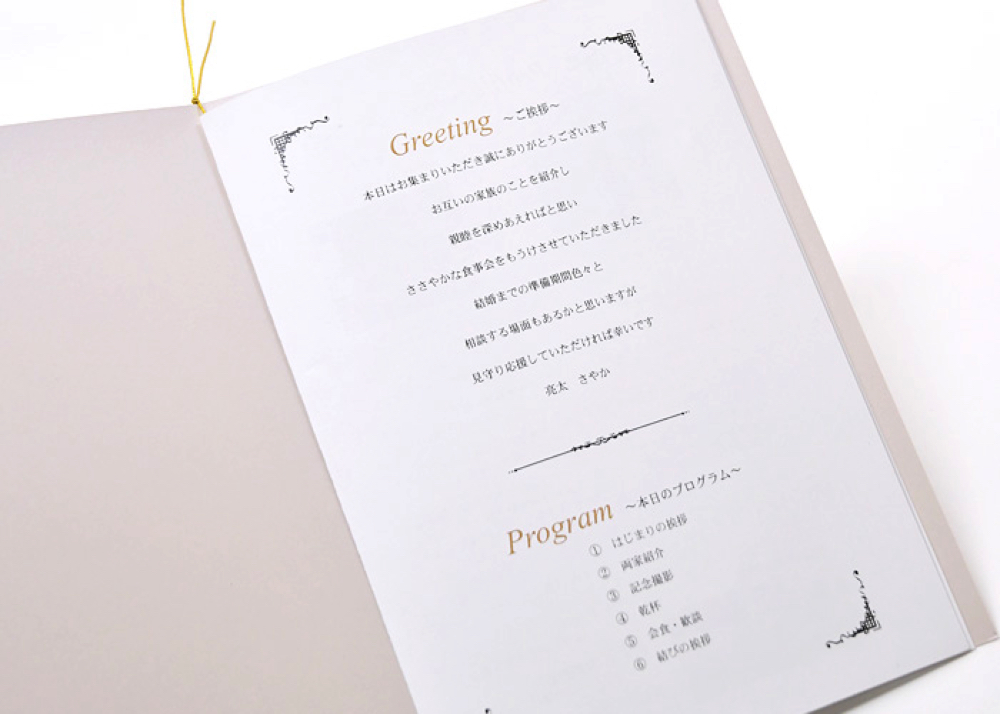 自宅にプリンターがない人もOKファルベのプリントアウトサービス!:お二人に合わせたアレンジもできる! 印刷込みの顔合わせ食事会しおり