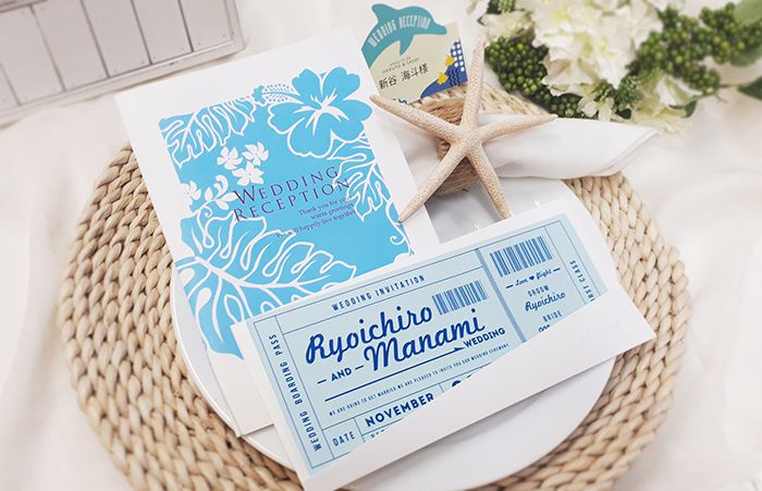 ご紹介した2つの招待状には、席次表・席札と同じシリーズでの展開していますが、