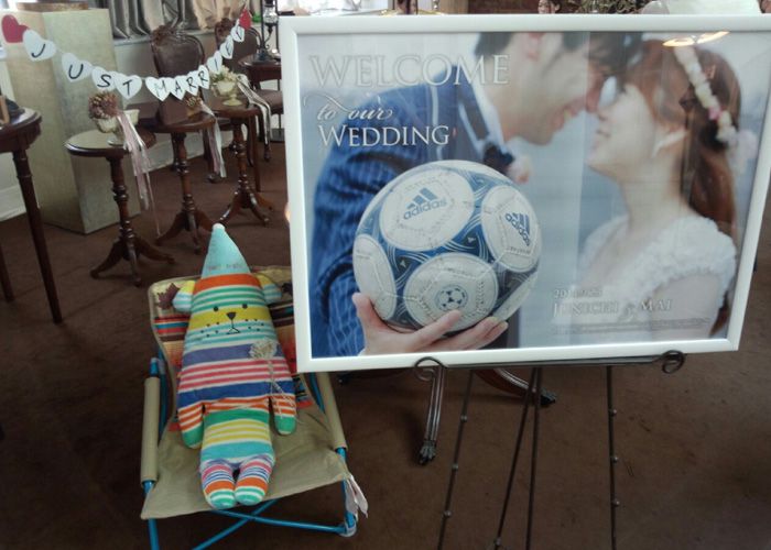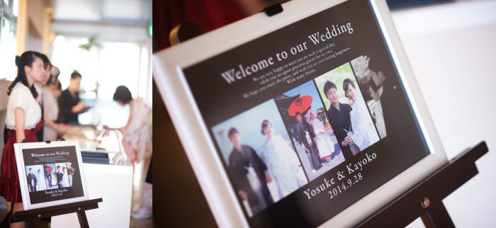 わたしたちはパン屋をやっているのでコックコートでの写真を依頼いたしました。素敵なウェルカムボードだったのでみんなに喜んでもらえました。