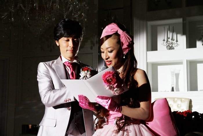 手紙を読む姿も美しく・・・・ピンクのドレスとバラのお花がピッタリ(*´∀`*)