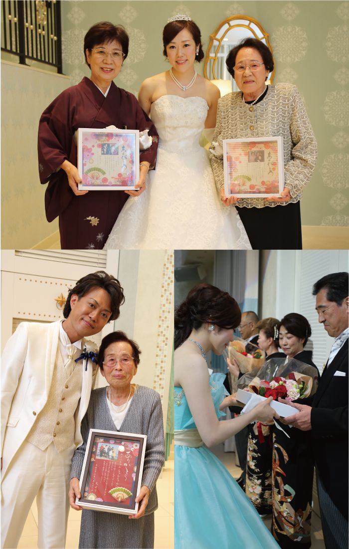 式場が洋式だったので、和装のプレゼントは驚いたらしく、各々送った両親達も大変喜んでくれて大成功でした(*^_^*)