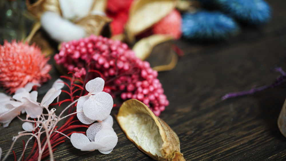 感謝ボードで使う場合はあまり繊細すぎるお花を選ばない、グルーガンなどでしっかり接着するなどの工夫が必要。持ち帰り時に取れてしまうことがないようしっかり固定&補強してあげるのもポイントです。