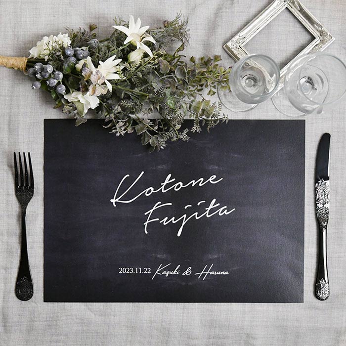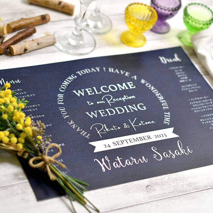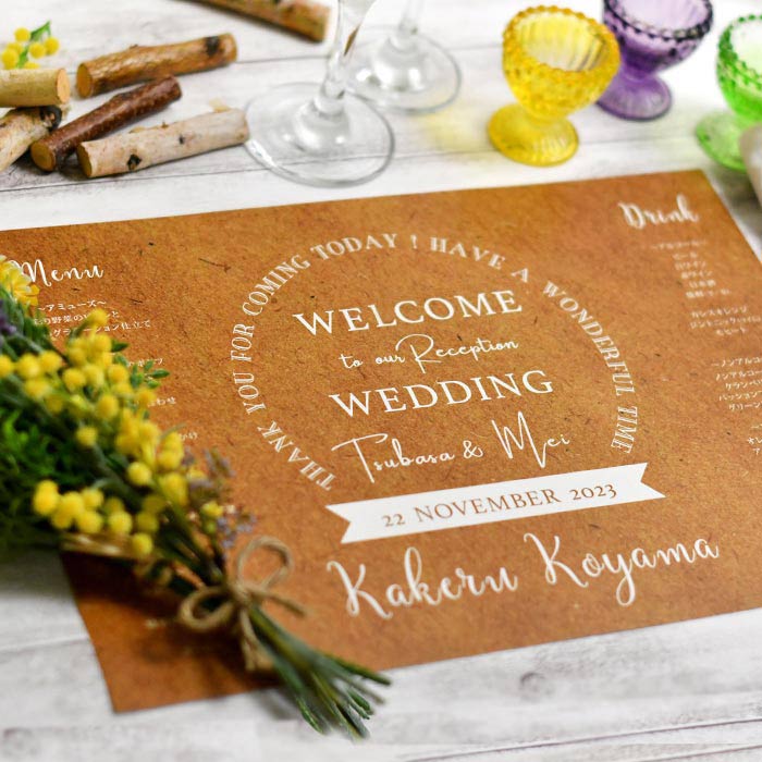オーダー方法は、結婚式の定番アイテム・席札ランチョンマットタイプとメニュー表付きのタイプ2種類があります。