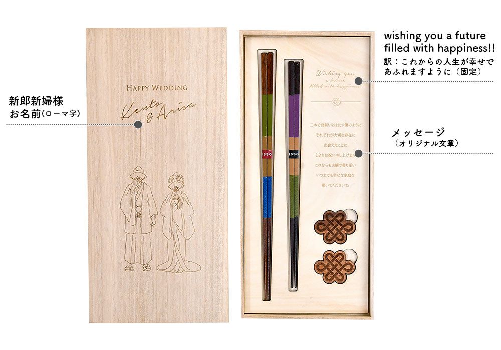 - 和洋で選べるおしゃれな線画イラストの記念に残せる桐箱にINした夫婦箸が新登場