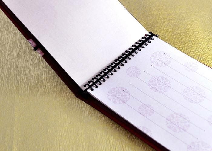 書きやすい横書きの罫線のみが入っています。記入項目はフリーなので自由に設定できます。紐をほどけば中のシートをはずして増やすことも可能です。