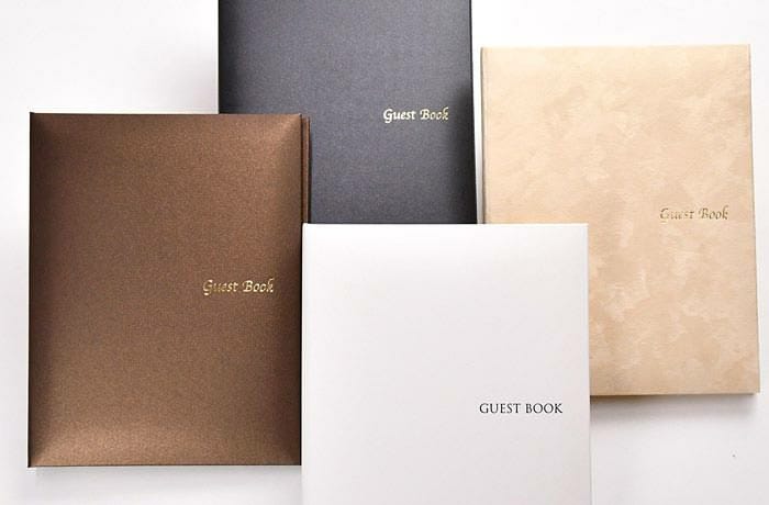 最近では、芳名カード(またはゲストカードとも言います)というスタイルが普及してきています。プライバシー保護の観点からもこの個別に記入&提出できるカードタイプを採用するケースが増えています。