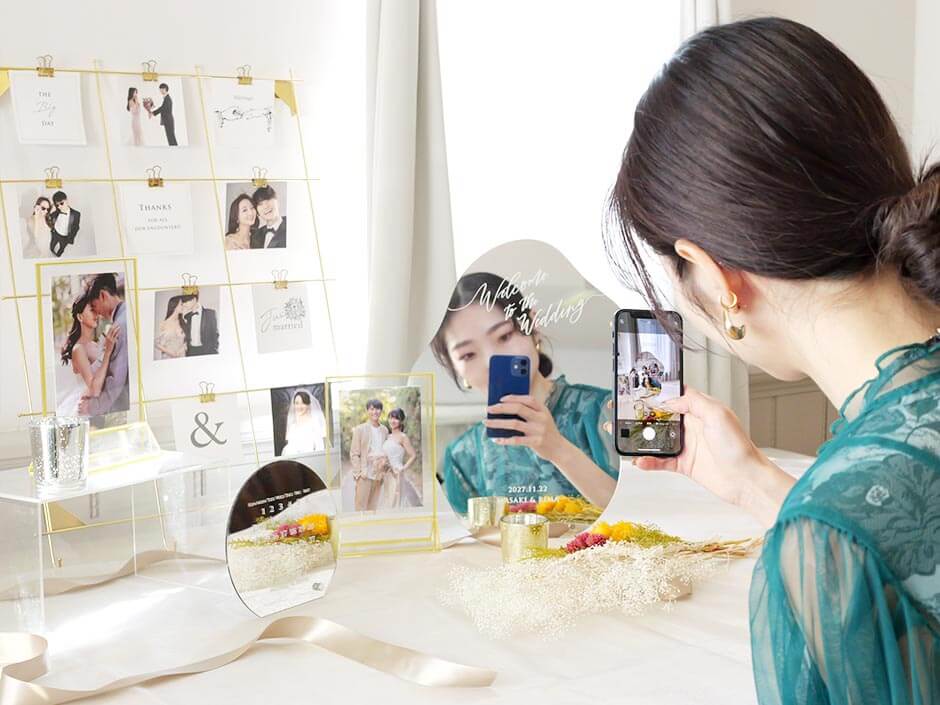 芳名帳だけでなく、ウェルカムボードやおしゃれなウェルカムミラー、ゲストが思わず写真を撮りたくなるようなアイテムを取り入れるのがおすすめです。