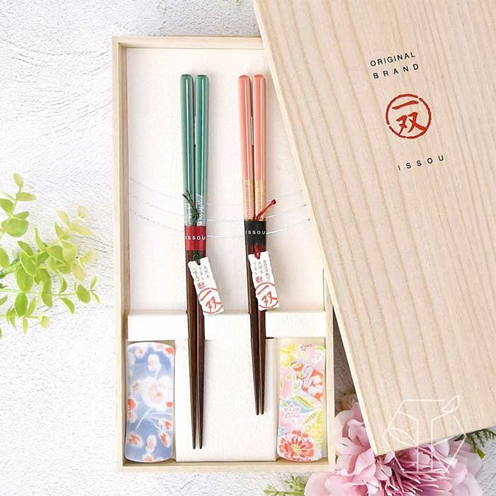 日常使いできる夫婦箸と箸置きは、実用性と可愛さを兼ね備えたセンスの良いワンランク上の贈り物です。高級感を格上げしてくれる桐箱にはお祝いのメッセージをレーザー刻印して、想いも伝えられます。