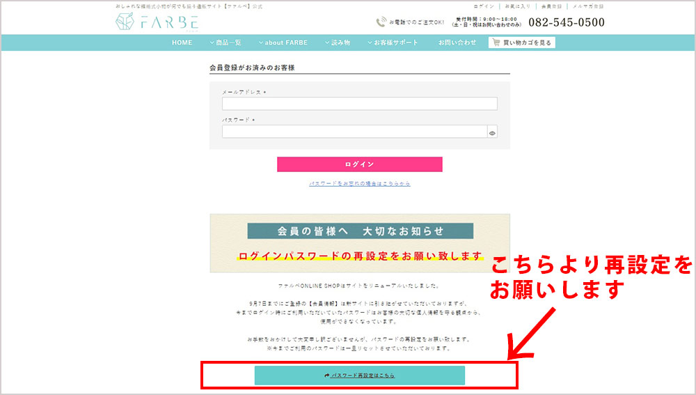 お手数をおかけし申し訳ありませんが、パスワードの再設定をお願いいたします。