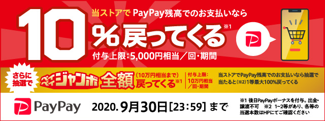 - PayPay利用がお得!「10%還元」キャンペーン中