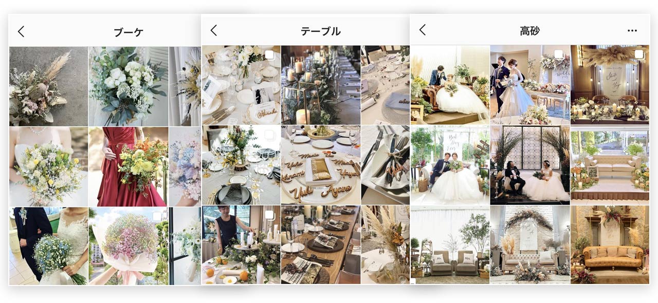 実際に私たち夫婦はInstagramの保存機能を利用して、カラーがイメージしやすいブーケやテーブルコーディネートなどでお互いが気に入ったイメージを保存していきました。