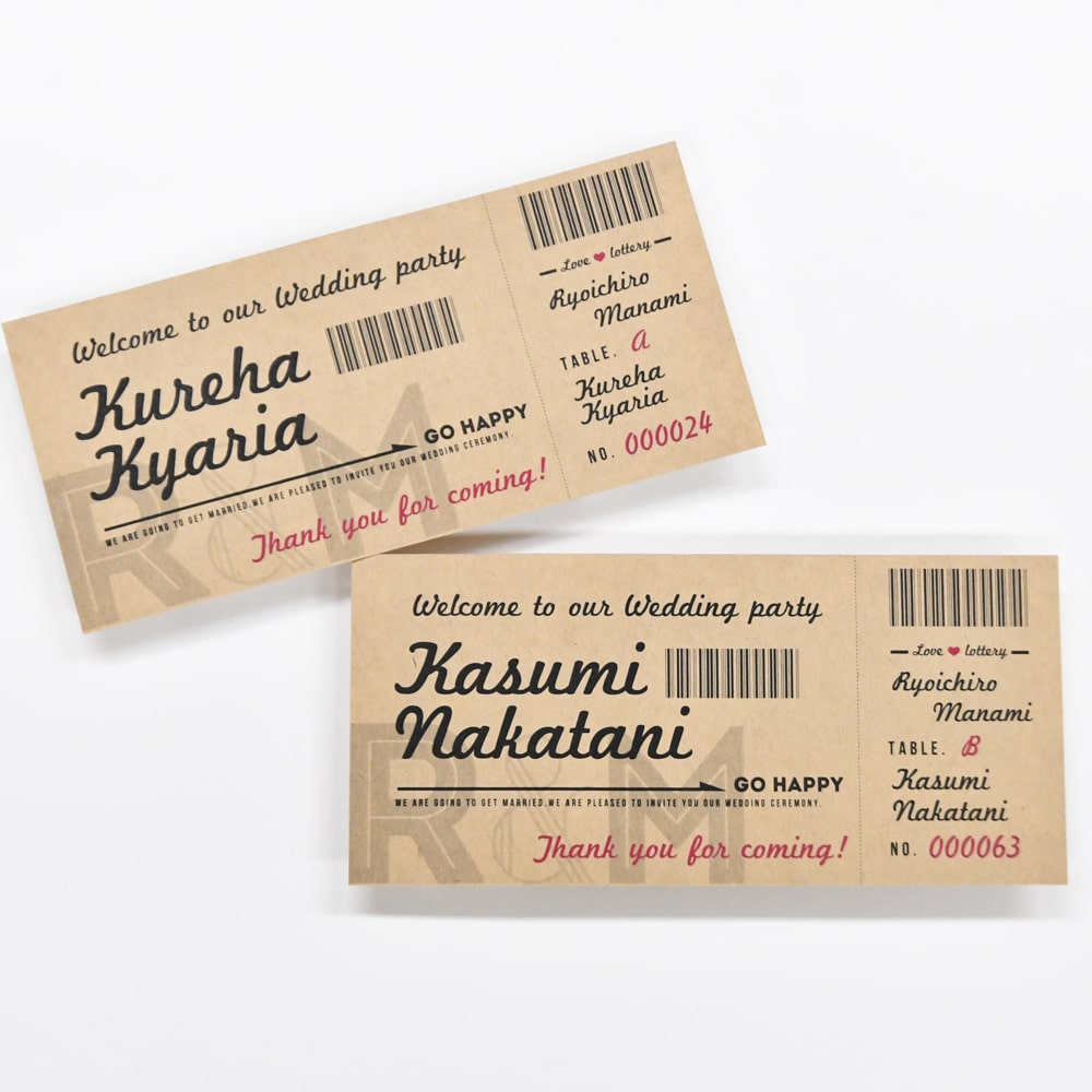 半券付きチケット風だから、ウェディング宝くじとしても使える!かわいい既製品のエスコートカードもありますので是非チェックしてくださいね!