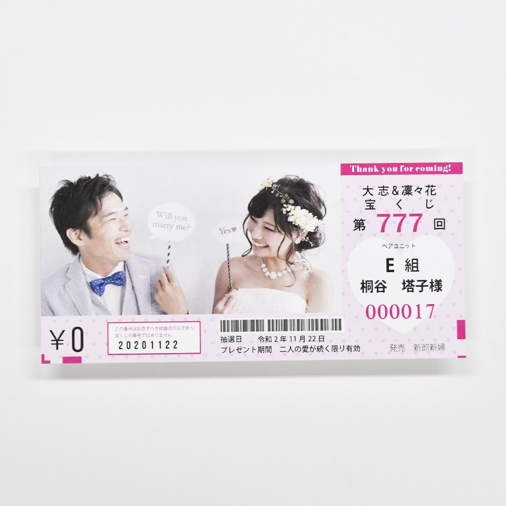 世界にひとつの自分だけ♪宝くじチケットとしてゲストの方にも喜ばれること間違いなしです♪