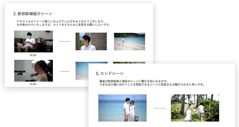 また、撮影依頼書や修正依頼書はPPTなどを作成して、実際に撮影していただいたシーンや、他の人のイメージを貼り付けてイメージが伝わるようにすることでスムーズに進みました。