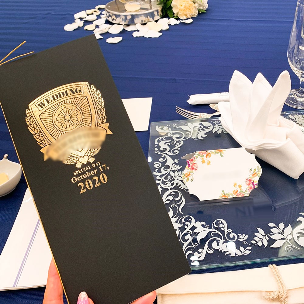 【オリジナル実例集】上質ブラック×キラリゴールドで重厚感アップの警察手帳風席次表