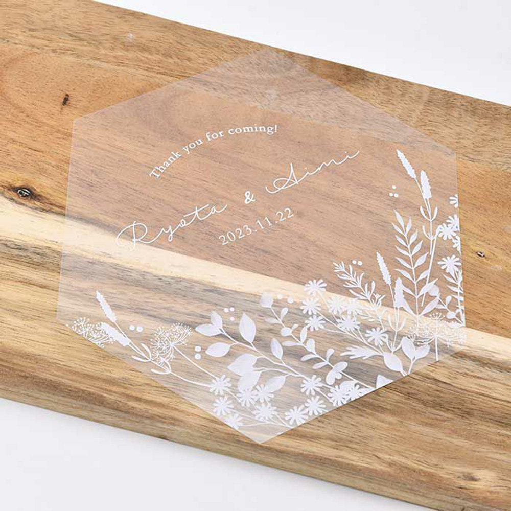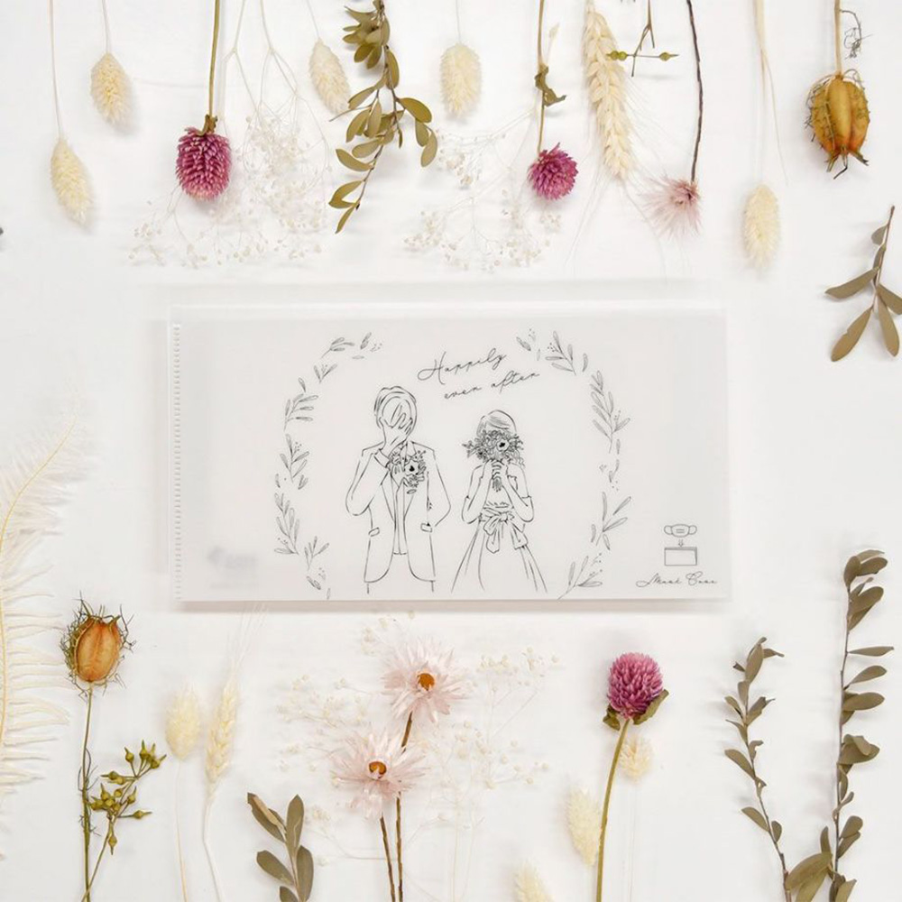 「Happy ever after」と書かれたフォントもそのまま使用し、おふたりのお名前と挙式日に変更をご希望されていたので