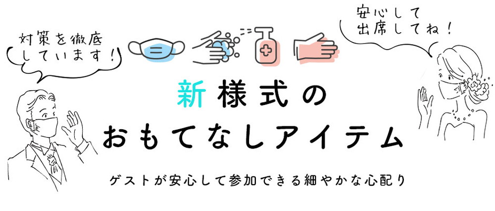 ここ最近ご注文が増えているコロナ対策のためのアイテムを紹介したいと思います。お問合せも増えており、ぜひ皆様の結婚式でお役立ていただきたいと思っています。